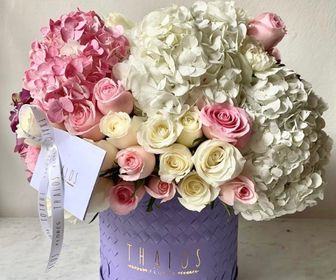 Hortensias Rosas y blancas. Rosas blancas y rosas caricia.
