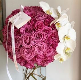 150 Rosas cool water y 2 varas de Orquídeas blancas.